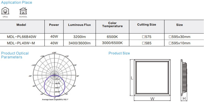 MDL-PL40W-M - 40w- 3600lm - 6500k